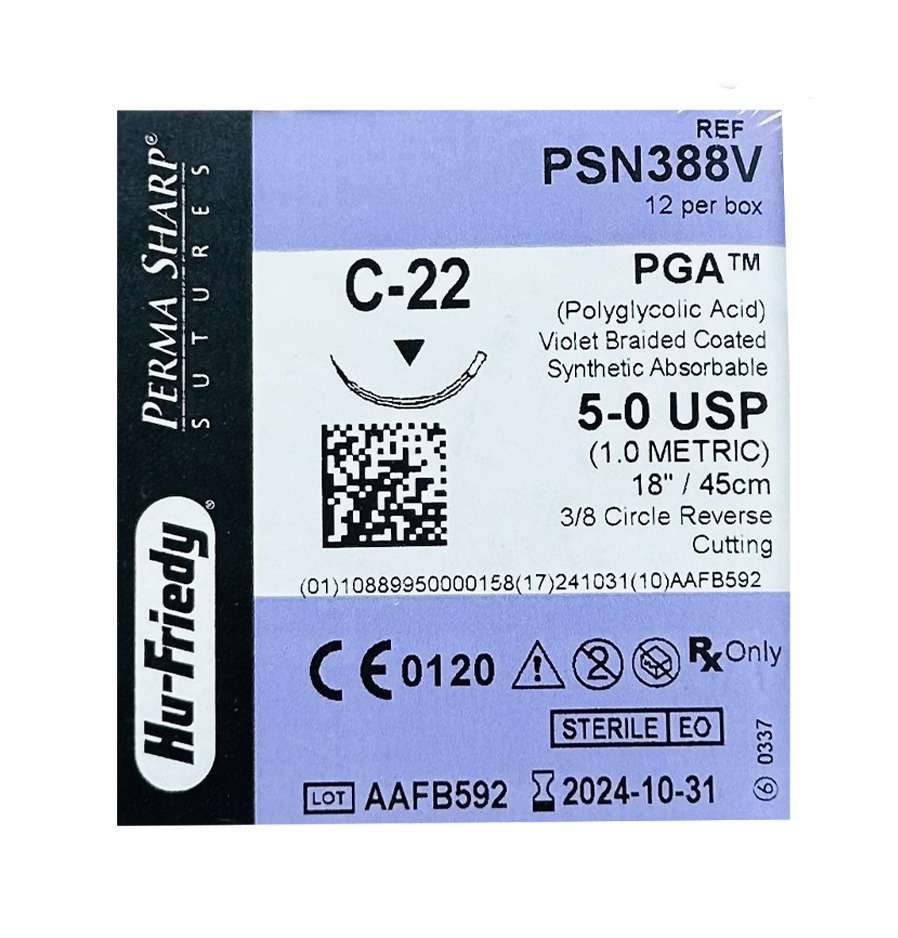 Boite de 12 fils 45 cm violets de suture résorbables, « Perma Sharp » C22 5/0 45 cm Hu-Friedy.